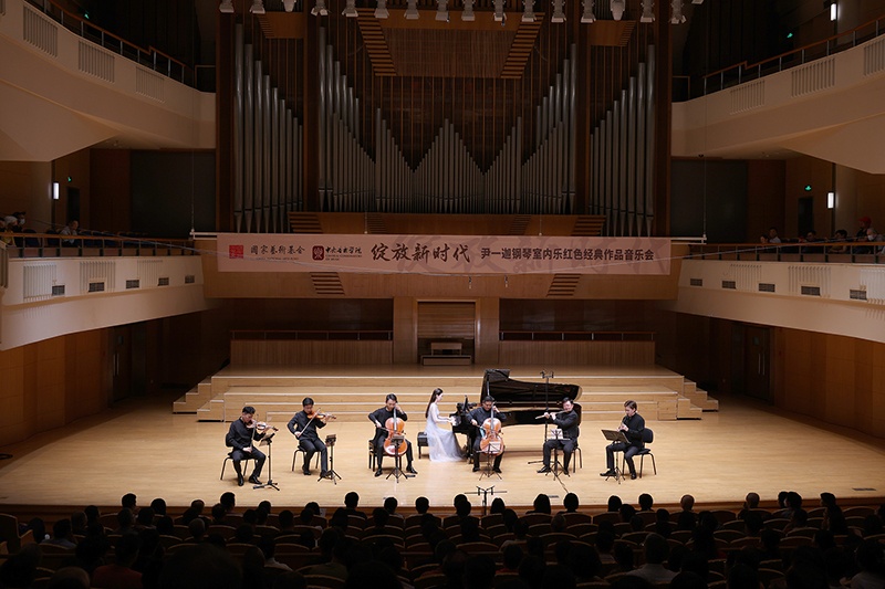 5月27日,“绽放新时代——尹一迦钢琴室内乐红色经典作品音乐会”在北京音乐厅举行。中央音乐学院钢琴副教授、管弦系教师党支部书记尹一迦携手陈曦、谢昊明、朱牧、杨锰、王滔、张毕乐等多名中央音乐学院优秀演奏家,给观众带来一场感官与精神的艺术盛宴。
