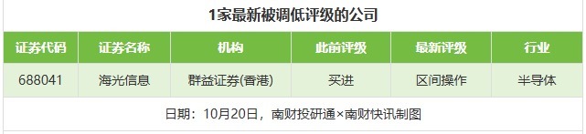 评级调低方面速配发金融网,10月20日,群益证券(香港)对海光信息的评级从“买进”调低至“区间操作”。
